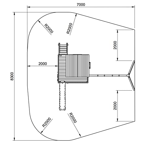 Nella parte inferiore della piattaforma c'è una grande lettiera . Si può abbassare dalla piattaforma con uno scivolo lungo 290 cm.