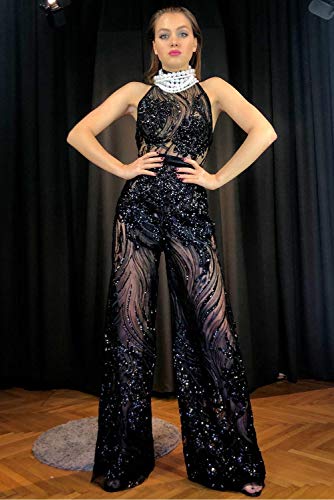MASHIKOU Jumpsuit da Donna Elegante Maniche Lunghe Tuta Eleganti da Cerimonia Lunghi Estivi Autunno Pagliaccetto Lungo Gamba Larga a Vita Alta Pantaloni Overall (Nero-2, Medium)