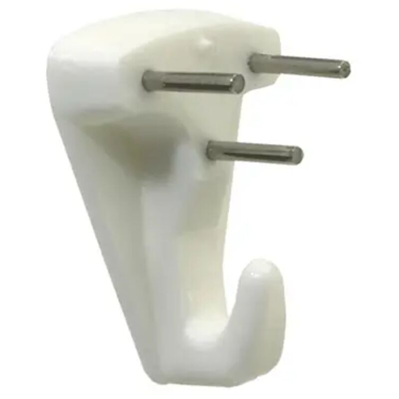 Ganci per appendere quadri alla parete, idonei per cornici leggere. Sostegno a 3 chiodi per un sostegno più sicuro. Realizzati in plastica resistente, colore bianco. Forniti in confezione da 3 pezzi.