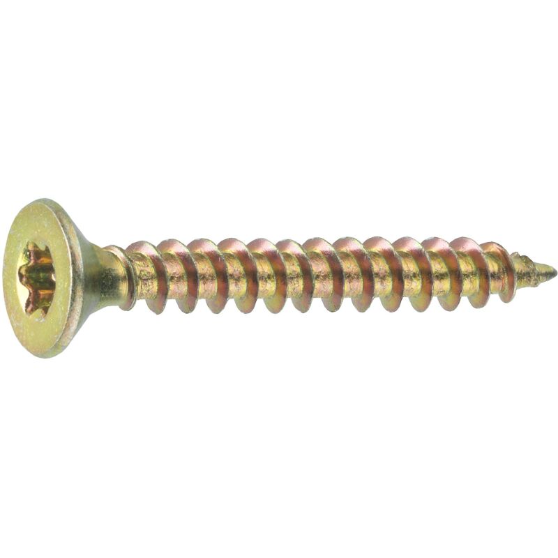Viti universali impronta Torx • impronta Torx • testa piana svasata (T.P.S) • diametro testa 4,0 mm. • lunghezza stelo 25 mm. • filettatura totale • finitura zincata giallo • adatta sia per legno sia per truciolare • sacchetto da 752 pezzi