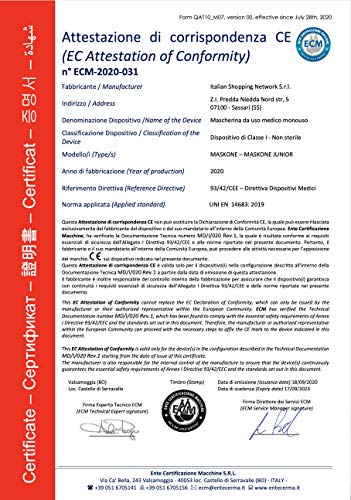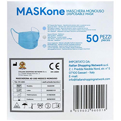 ISN MaskONE Junior - Mascherine Chirurgiche Monouso per Donne e Bambini - Certificate CE - Confezione da 50 pezzi - Imbustate singolarmente