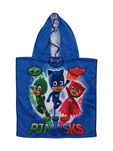 PJ Masks Super Pigiamini A95785 Poncho Mare, Telo, Spiaggia, Asciugamano, Cotone, Piscina, 50 X 100 Centimetri, Multicolore, Gattoboy, Gufetta, Geco