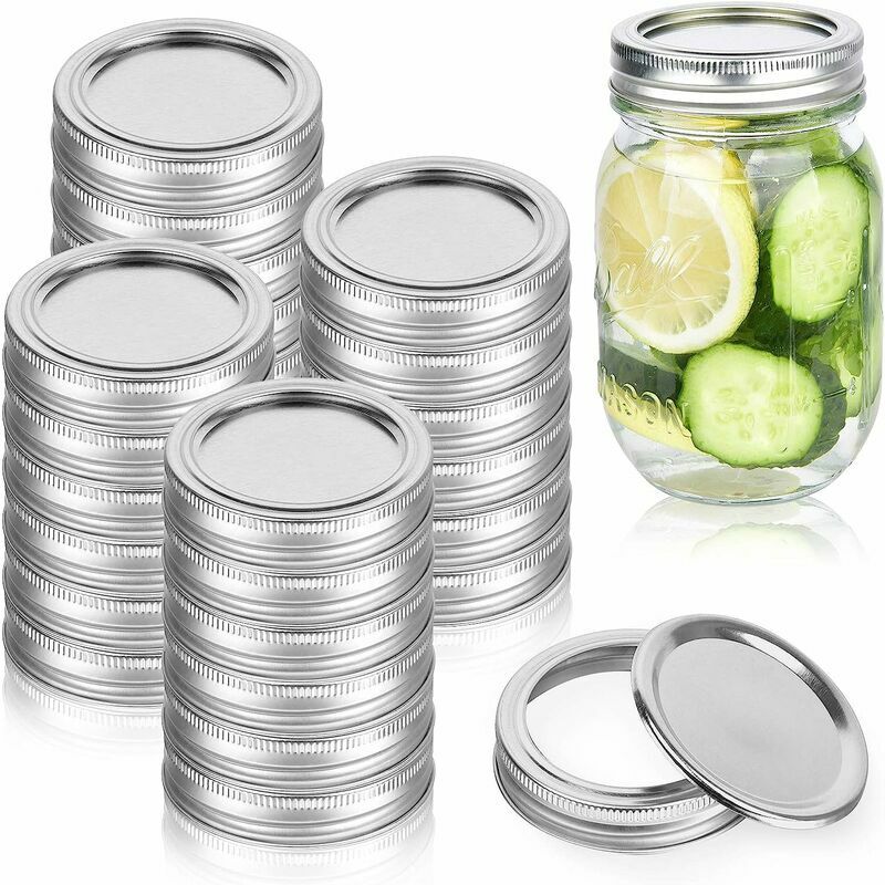 CONTENUTO DELLA CONFEZIONE: Riceverai una confezione di 24 coperchi e bande per conserve di tipo diviso (24 bande e 24 coperchi), e il diametro esterno della fascia è di 7 cm / 2,76 pollici e il diametro interno del coperchio è 5,5 cm / 2,2 pollici, quantità adeguata da utilizzare, sostituire e condividere con la tua famiglia o i tuoi amici. MATERIALE PREMIUM: I coperchi e le fasce dei barattoli sono realizzati in banda stagnata e il coperchio copre un anello in PVC ;