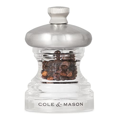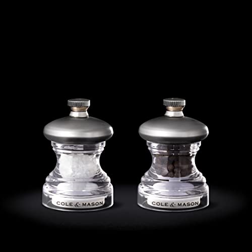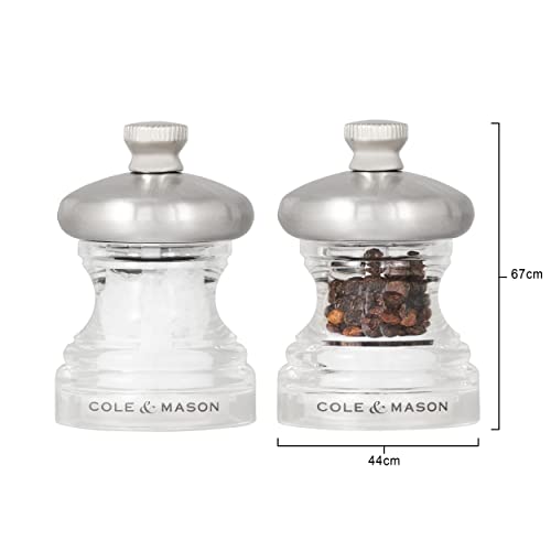 Cole & Mason H302418 Button Macina Sale e Pepe, Macinatura Regolabile/Compatto, Acciaio inossidabile/Acrilico, 65mm, Include 2 x Mulini, Garanzia a Vita sul Meccanismo
