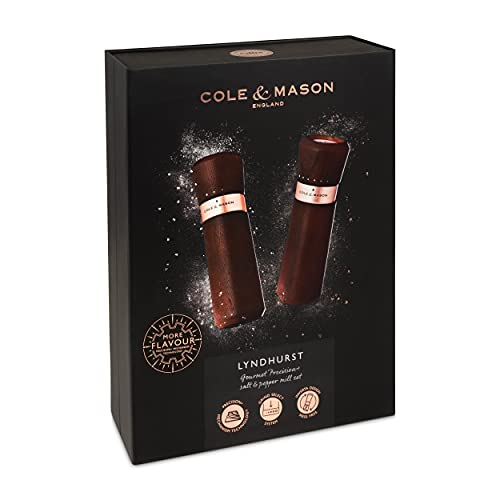 Cole & Mason H331935 Lyndhurst Castagno e Oro Rosa Macina Sale e Pepe, Gourmet Precision+ Macinatura, Cenere Macchiata, 185mm, Pacco Regalo, Include 2 x Mulini, Garanzia a Vita sul Meccanismo