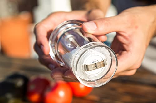 acciaio al carbonio per pepe che spoglia i grani di pepe invece di schiacciarli e ceramica affilata per il sale, garantendo il massimo rilascio di sapore da ogni turno.