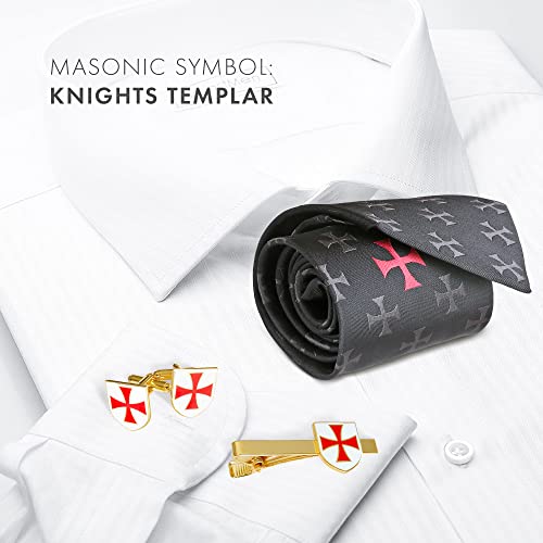 Masonic Knights Templar - Set di gemelli e fermacravatta con scatola per gemelli