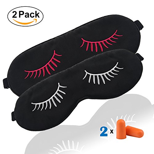 Masque de sommeil en soie naturelle Fitglam avec pattes de cils et bouchons d'oreille gratuits, Meilleur couvre-oreille pour dormir, Voyage, repose-pieds, méditation, bandoulière avec sangle réglable pour hommes, femmes ou enfants