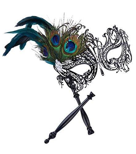 Masquerade maschera veneziana farfalla lucido del metallo Mardi Gras maschera multicolore (Black with stick)