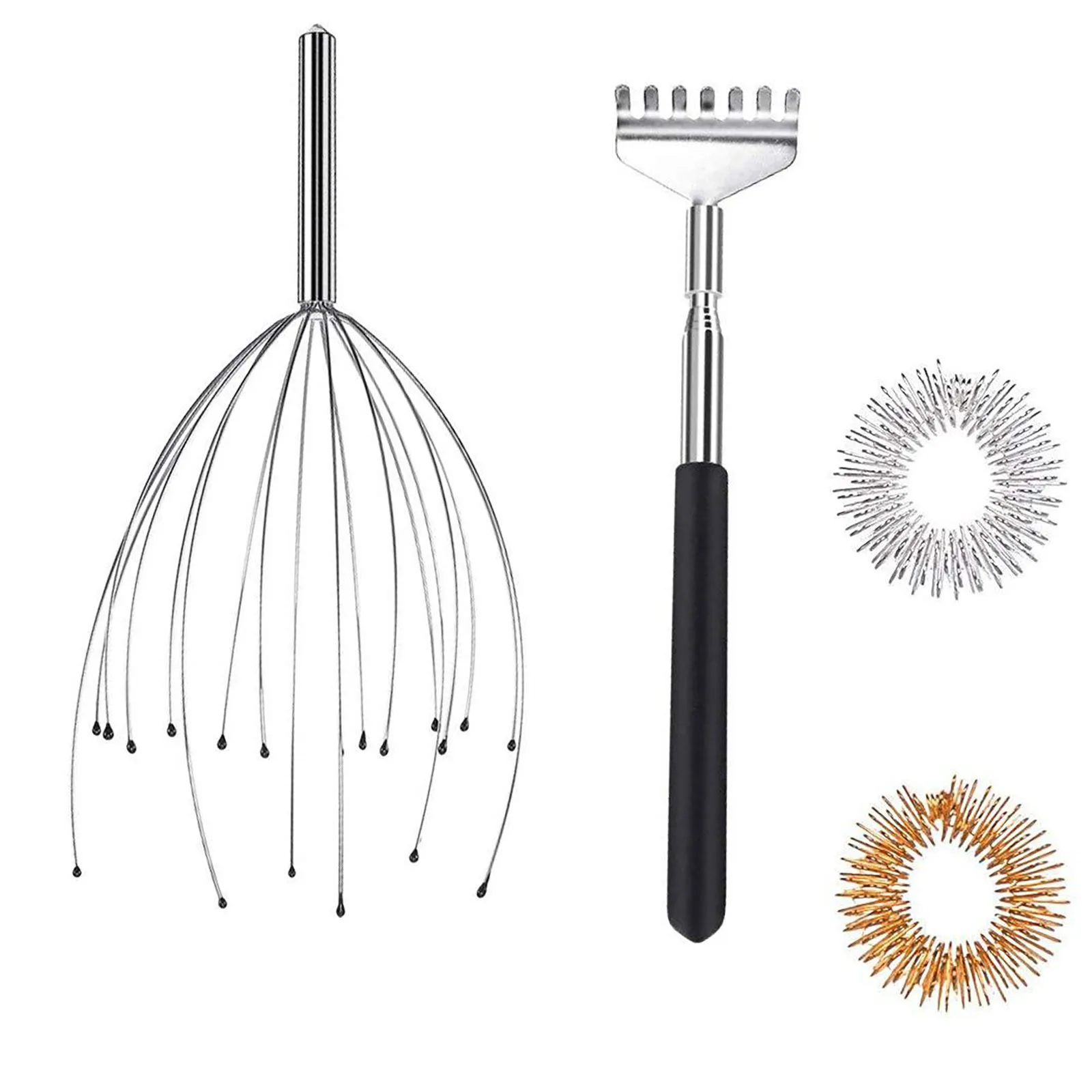 Massage Set Scalp And Back Massage Claws And Finger Massage Rings Flexible Stainless Steel Easy Use Head Massager Care Tools