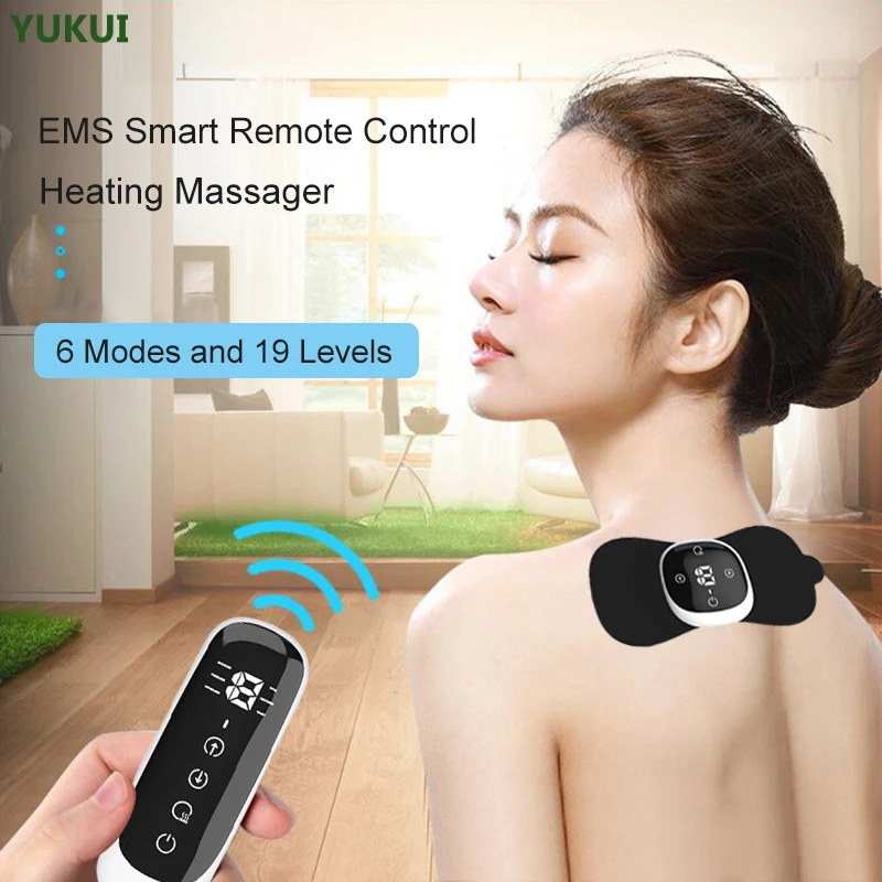 Mini Neck Massager EMS Heating Cervical Massage Sticker Portable Smart Remote Control Warm Belly Arm Leg Electric Massager Pad