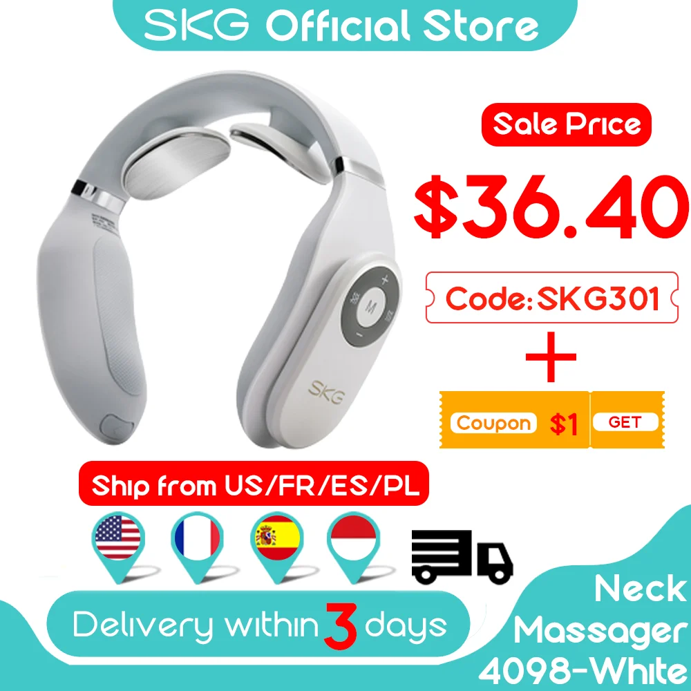 SKG Neck Massager 4098 Remote Control EMS Electric Pulse Smart Massager For Neck Cervical Pain Relief Protector For Home Office