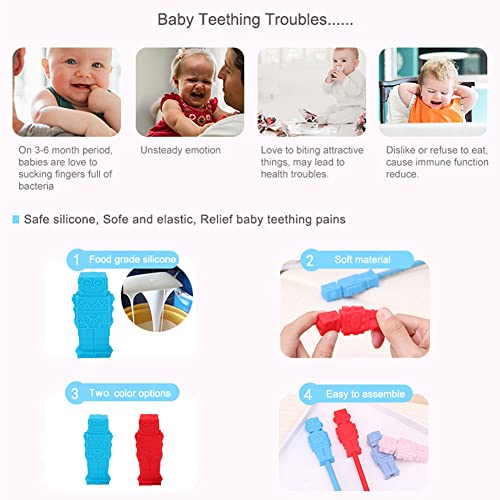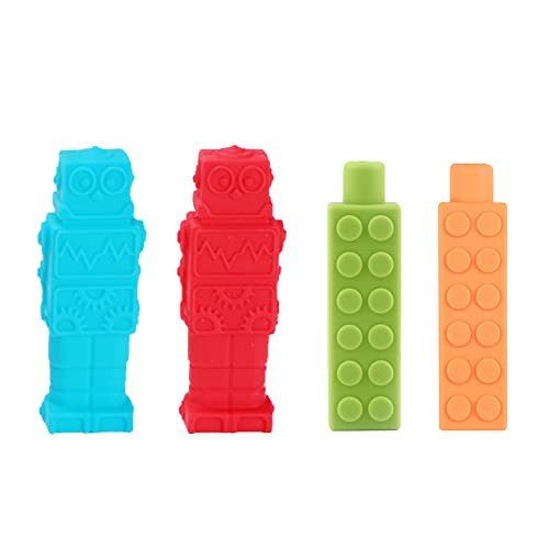 Massaggiagengive Silicone, Yuccer 4 Pacchi Non Tossico Gomma a Forma di Matita per Bambino Giocattolo Robot (blu, grigio, verde, arancione)