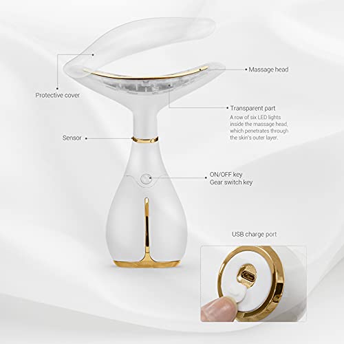 Ms.W Massaggiatore Viso e Collo Antirughe, 45℃ Calore Massaggiatori Viso Anti Invecchiamento Per La Cura Della Pelle Dispositivo di Bellezza, Rassodamento della pelle, USB ricaricabile, 3 modalità