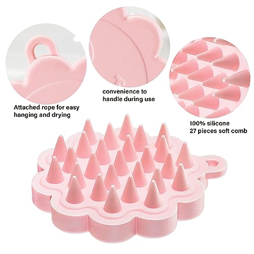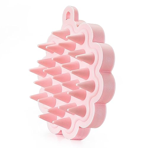 Massaggiatore Cuoio Capelluto, Spazzola Shampoo per Barba e Capelli, 100% Silicone Esfoliazione e Massaggio della Testa, Bagnato e Secco, Rosa