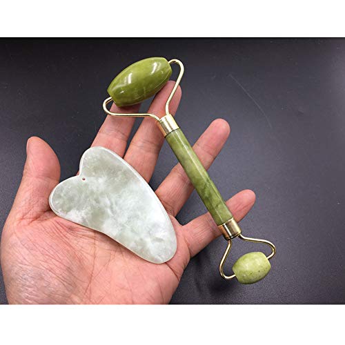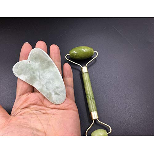 Massaggiatore Jade Roller per viso Anti Aging Gua Sha Raschietto per massaggio Set di strumenti Terapia 100% Natural Jade Rullo viso anti rughe e pelle Ringiovanire 1 Set
