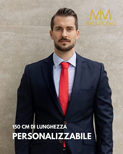 Massi Morino Cravatta in seta Rosso uomo - 6,5 cm di larghezza, 155 cm di lunghezza - 100% seta I Cravatta da uomo slim-fit I Confezione regalo inclusa