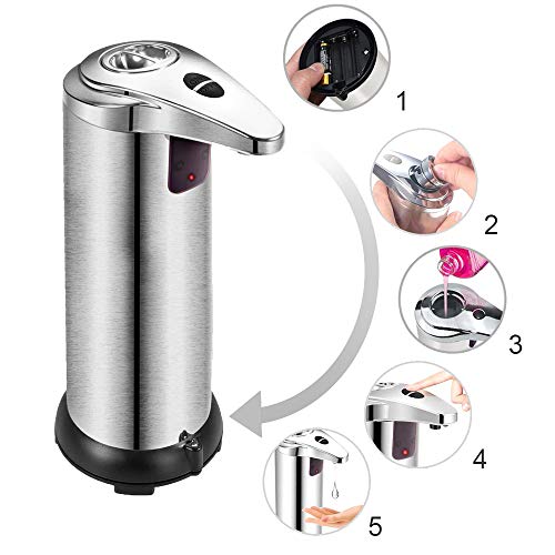 Massway Dispenser Sapone Automatico 250ML Erogatore Per Sapone Liquido Con Sensore a Infrarossi Touchless acciaio inossidabile con base impermeabile per la cucina e bagno Office Sanitizer Shampoo Lotion (Silver)
