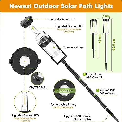 Alimentazione solare ad alta efficienza: le luci solari da giardino sono dotate di una potente batteria ricaricabile da 800 mAh e pannelli solari in silicio monocristallino aggiornati con un'efficienza di conversione della luce solare fino al 25%. Ricarica automatica per 6-8 ore durante il giorno e la lampada solare da giardino si accende automaticamente al crepuscolo e fornisce 8-10 ore di luce bianca calda.