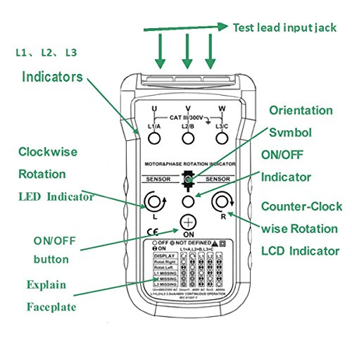 JZK® MASTECH MS5900 Professionale motore e fase indicatore di rotazione indicatore di sequenza di fase elettrico metro a motore e fase, AC120V - 400V, 3 fasi, batteria inclusa (MASTECH MS5900)