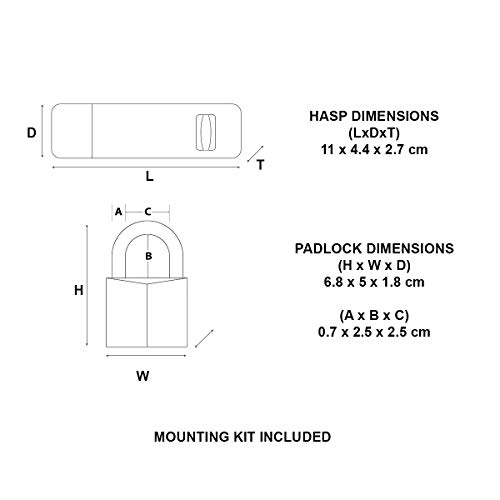 DIMENSIONI: Hasp (L x D x T) 11 x 4,4 x 2,7 cm ;