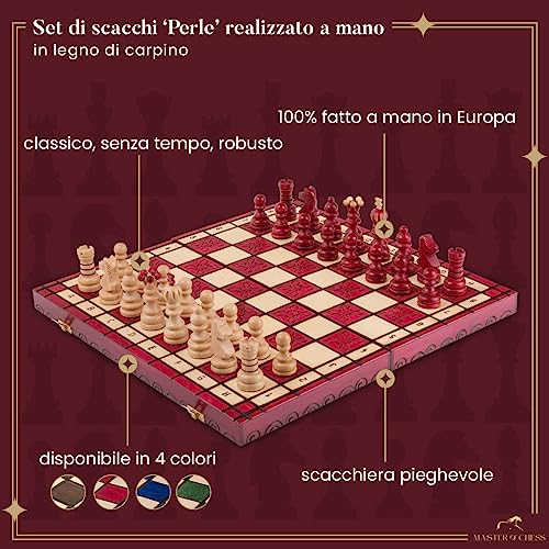 Master of Chess Scacchiera in Legno “PEARL XL” 42 cm - Fatto a Mano Scacchiera Portatile - Rosso Grandi Set di Scacchi Pieghevoli per Bambini e Adulti