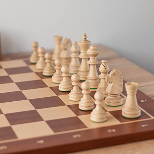 Master of Chess Scacchiera in Legno da Torneo 54 cm - Fatto a mano Intarsiata Grandi Scacchiera Portatile - Set di Scacchi Pieghevoli per Bambini e Adulti - Con Figure STAUNTON NO.6 in Scatola