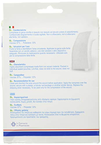 Specifiche tecniche: garza in tessuto non tessuto in fibre 30% poliestere, 70% viscosa