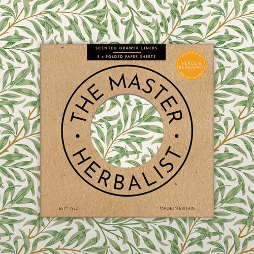 The Master Herbalist NEROLI & BERGAMOT - Confezione da 5 fogli profumati per cassetti, design William Morris, contiene oli essenziali