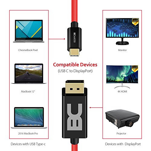 BC Master C2D2 2.1M Cavo Intrecciato USB C a DP, USB Tipo C (Compatibile Thunderbolt 3) a Cavo DP per Samsung Galaxy S8 / S8 Plus, 2016 MacBook Pro, MacBook 12", ChromeBook Pixel, ecc