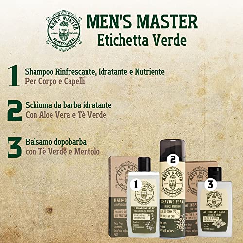 Prodotto - Scopri le proprietà del sapone liquido corpo e capelli Men's Master, adatto per la detersione sia del corpo che dei capelli. Appartiene alla gamma Green Label del marchio, che lenisce la pelle sensibile e garantisce il massimo comfort, idratando e nutrendo pelle e capelli.