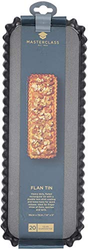 Masterclass Teglia Rettangolare per Sformato/Quiche con Base Rimovibile, Acciaio, Nero, 36 cm x 13 cm