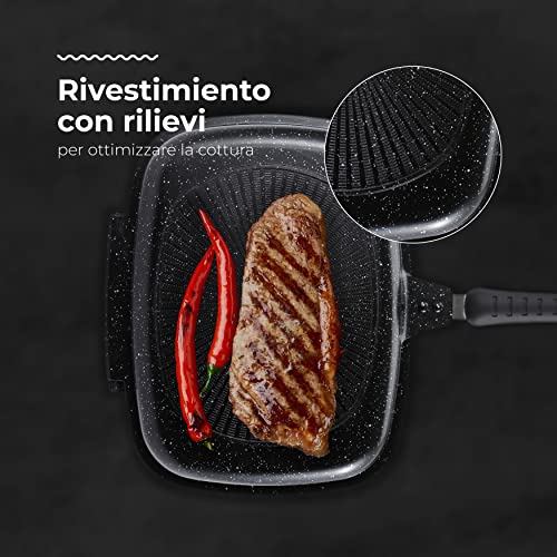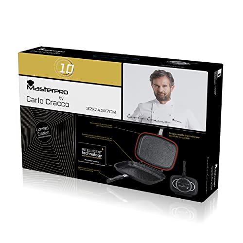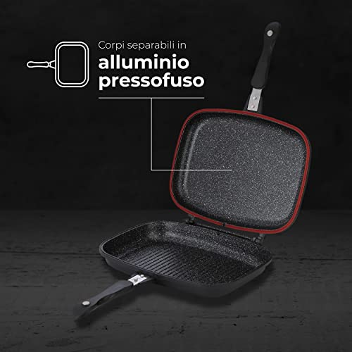 MasterPRO by Carlo Cracco - Padella doppio grill effetto fornetto 30x24x7,2cm, corpi separabili in alluminio pressofuso con rivestimento antiaderente effetto pietra, chiusura ermetica