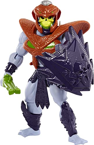 Masters of the Universe Origins - Personaggio Skeletor con Armatura Snake Men, action figure MOTU snodata da collezione con accessori e mini fumetto, giocattolo per bambini, 6+ anni, HKM68