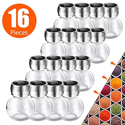 16 barattoli per spezie in vetro: il portaspezie ha 16 barattoli per spezie in vetro, ciascuno con una capacità di 95 ml, che può contenere fino a 16 spezie diverse, come sale, pepe, timo, paprika, rosmarino, ecc. I coperchi per barattoli per spezie sono realizzati in plastica per uso alimentare, senza BPA e il corpo del barattolo è realizzato in vetro, sano e innocuo, in modo da poterlo utilizzare con fiducia.