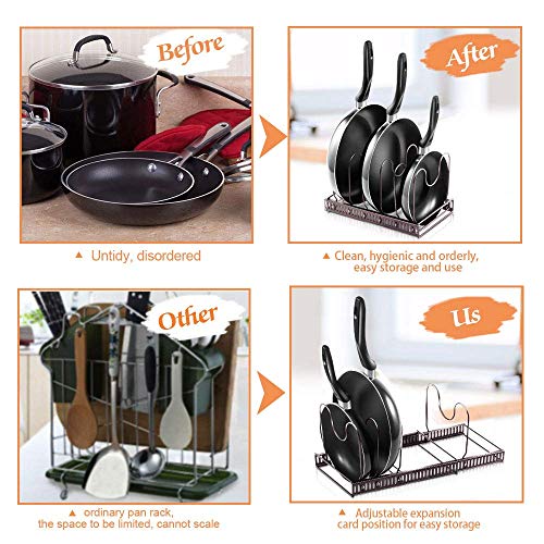 MASTERTOP Supporto per Pentoles e Padelle Espandibili insieme a 7 Separatoris Regolabili per Utensili da Cucina, Organizer Multifunzione per per Pentole e Coperchio