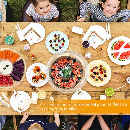 【Vassoio per torte 6 in 1】 Il nostro vassoio per torte ha molte funzioni e usi, puoi servire quasi tutto su questo vassoio, come: verdure, snack, noci, biscotti e altro ancora. Può anche essere conservato separatamente o come piatto da insalata, oppure utilizzare il coperchio e la base separatamente e contenere patatine, frutta e altri snack.