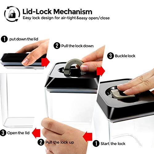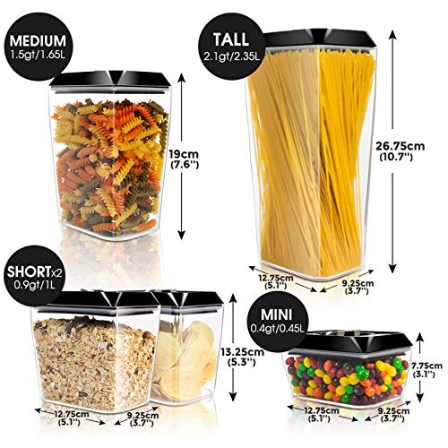 Contenitori di diverse dimensioni in grado di ospitare diverse cose. Ideale per lo stoccaggio di merci secche e elettrodomestici, come farina, zucchero, farina d'avena, fagioli, noci, cereali, snack, alimenti animali domestici e gli ingredienti da forno.