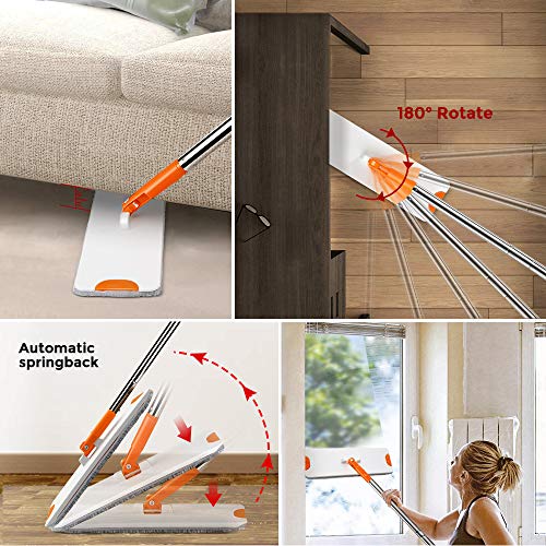 ✅【Testa del mocio rotante a 360°】 La testa del mocio di questo mocio può essere ruotata di 360°, che è altamente adattabile e può raggiungere ogni angolo e spazio del pavimento. Facile da pulire in aree difficili da raggiungere come angoli, sotto le scrivanie e sotto i letti. Rendi la pulizia della casa non più difficile, è un buon aiuto per i tuoi lavori di pulizia.