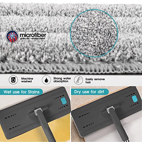 [6 Tamponi in microfibra] Questo set di mocio viene fornito con 6 tamponi in microfibra di alta qualità. Lascia che il mocio abbia una vita più lunga. Questi tamponi assorbono l'acqua rapidamente e rimuovono facilmente polvere e sporcizia. È molto liscio e non graffia la superficie del pavimento durante la pulizia.