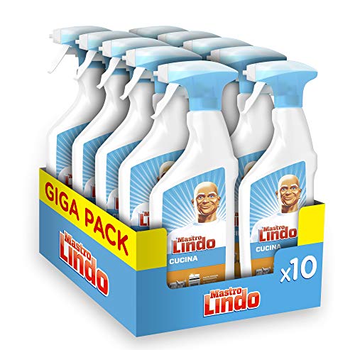 Mastro Lindo Universale Detersivo Cucina Spray, Maxi Formato 10 Pezzi da 500 ml, Rimozione Completa del Grasso Ostinato e Brillantezza Splendente, Rimuove fino al 100% delle Macchie Difficili