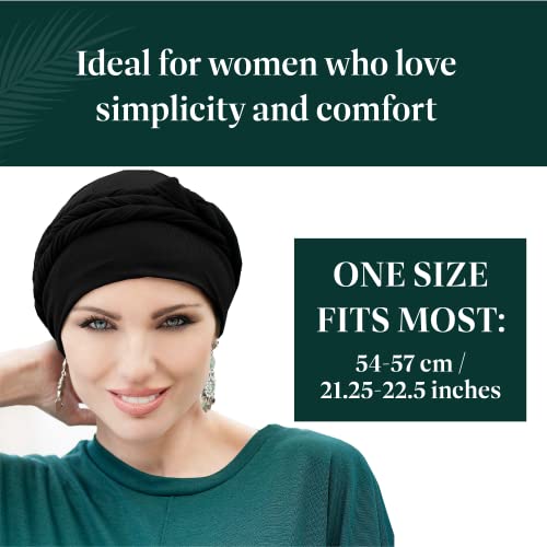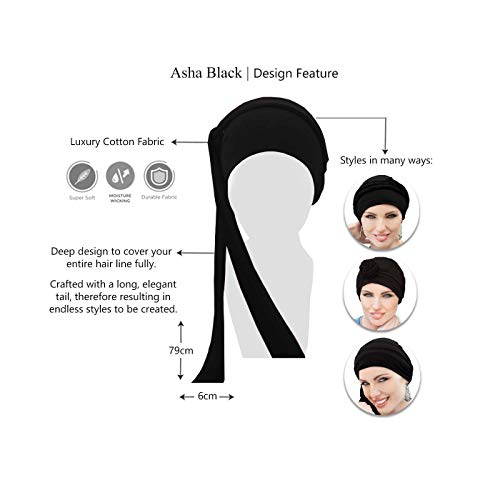 MASUMI Asha - Copricapo in Cotone Effetto Seta - per pazienti Cancro, per Chi soffre di Alopecia o Perdita di Capelli - Donna - Nero