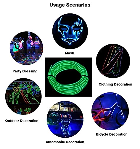 MASUNN 10M El LED Flessibile Morbido Tubo Filo Neon Bagliore Auto Corda Striscia Luce Natale Decor Dc 12V-Verde Chiaro