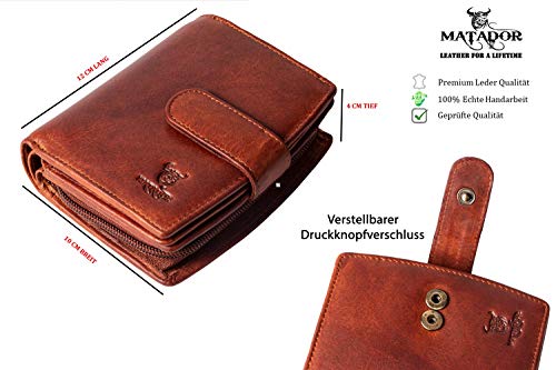 Matador Portafoglio da donna vera pelle con protezione RFID/NFC testata dal TÜV Portafoglio in Marrone Antico dal design vintage antico, portafoglio con scatola regalo inclusa