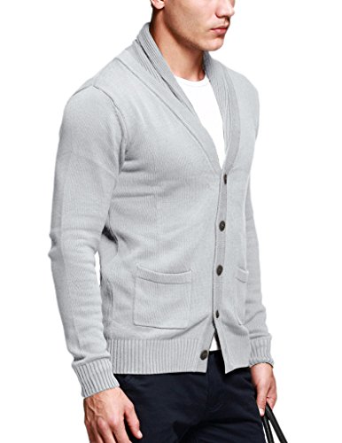 Match, cardigan da uomo con collo sciallato, in cotone 12088 grigio neve. Medium