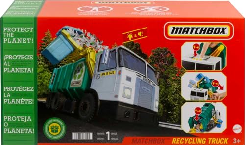 Matchbox - Camion Raccolta Differenziata, realistico, 38 cm con luci e suoni, realizzato per oltre l'80% in plastica certificata ISCC*, per collezionisti, Giocattolo per Bambini 3+ Anni, HHR64