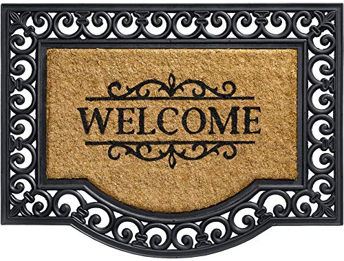 Matches21 Zerbino in cocco KOKOS per interni ed esterni, con ornamenti, bordo in gomma e Welcome, 60 x 80 cm, antiscivolo