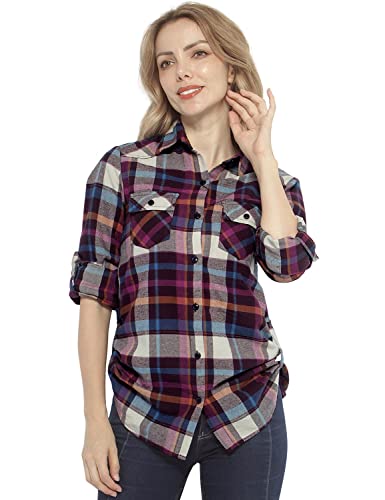 Matchstick Camicia da Donna, Flanella, a Maniche Lunghe, Motivo Scozzese #B003(2021 Checks#18,L)