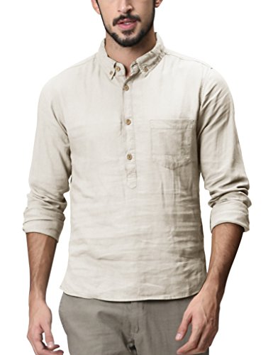 Matchstick Camicia da Uomo in Lino, a Maniche Lunghe #2011(2010 Albicocca Chiara,M)