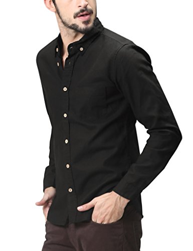 Matchstick Camicia da Uomo in Lino, a Maniche Lunghe #2011(2011 Nero,XL)